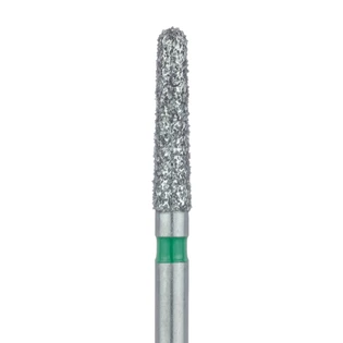 Pierwsze zdjęcie ma charakter poglądowy, drugie zdjęcie przybliża kształt i nasyp, a dalszy opis precyzyjnie określa pozostałe cechy, np. wielkość w mm. Wiertło diamentowe Meisinger na turbinę, zwężający się ku górze zaokrąglony stożek, nasyp gładzący (pasek czerwony), rozmiar części pracującej 1,8mm sprzedaż na sztuki.