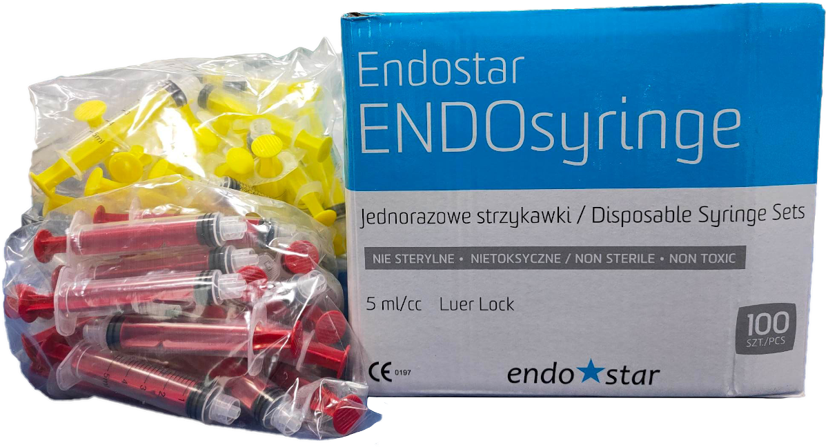 STRZYKAWKA Endostar /z gumowym tłokiem, luer lock/ 5ml. (mix kolorów) 100szt.